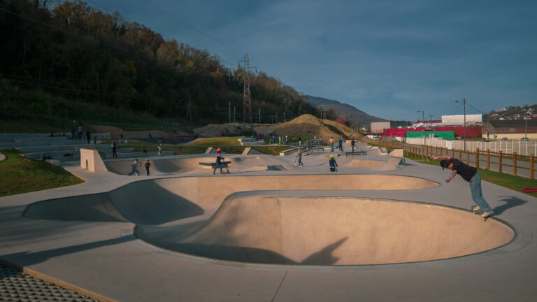 Les skateparks sont réalisés en béton projeté en voie humide, une technique issue du monde des piscines, particulièrement adaptée aux bowls, transitions et formes courbes. Cette méthode assure une mise en œuvre précise, homogène et conforme aux exigences des chantiers publics.