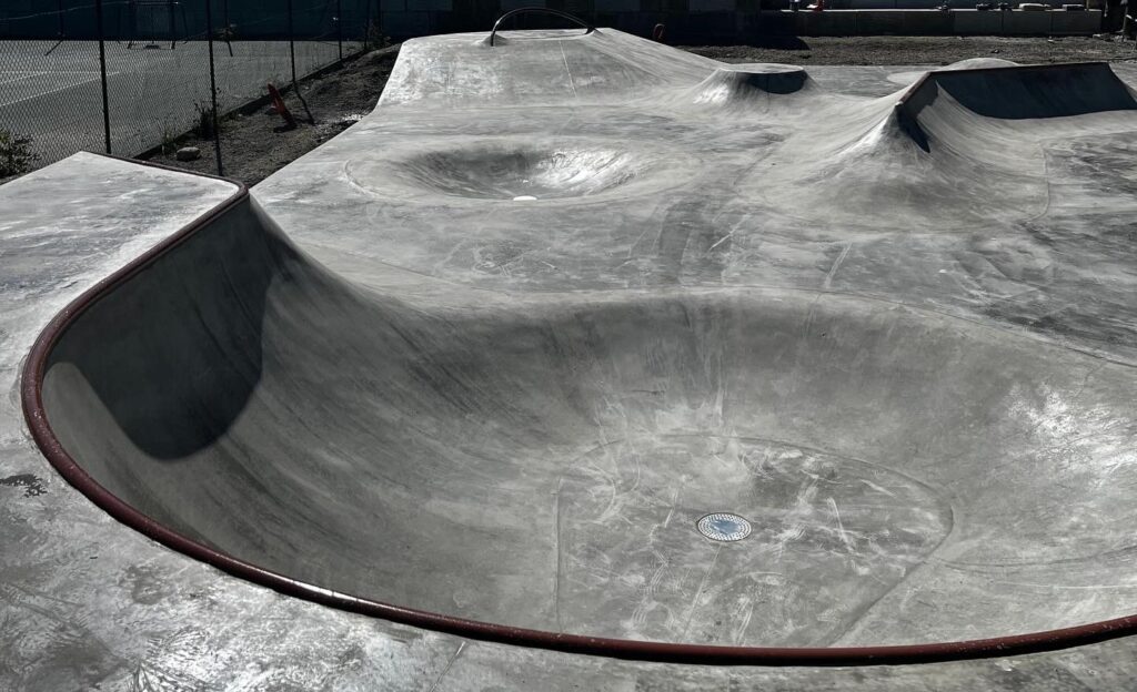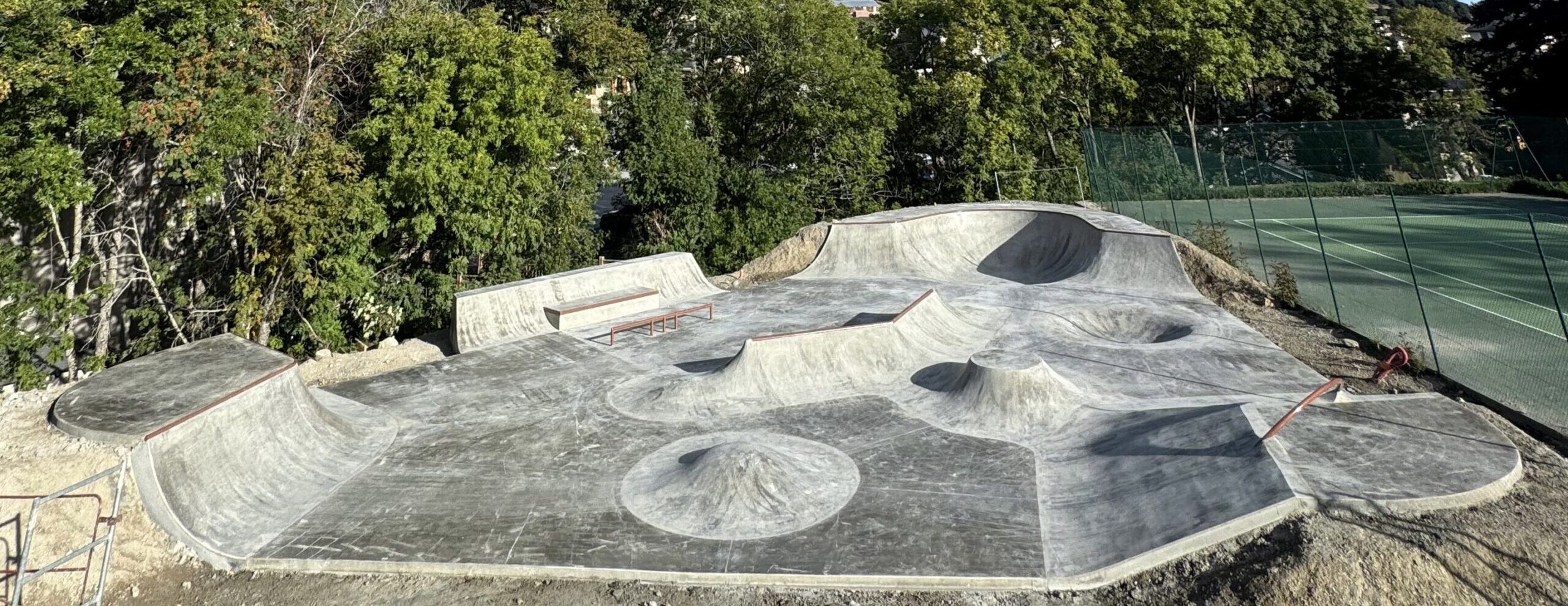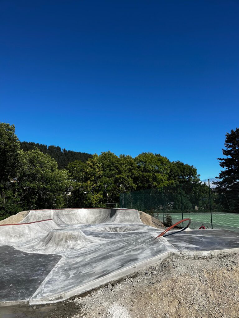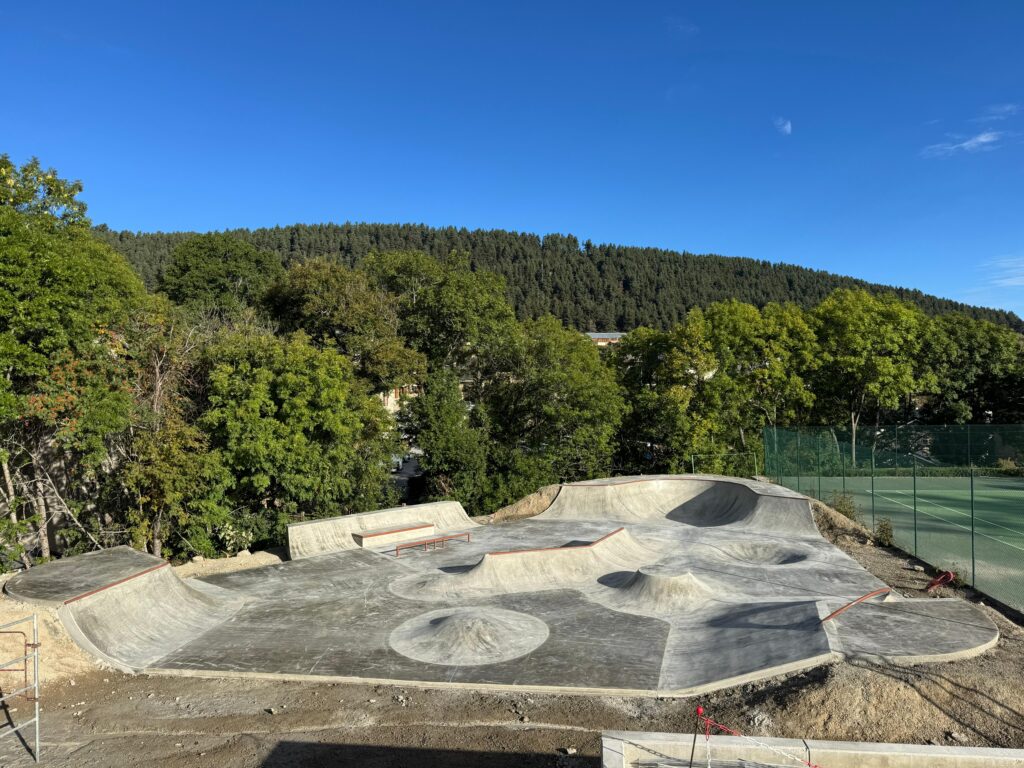 La construction, d’une superficie de 700m² a été réalisée en partie en shotcrete (béton projeté), une technique qui consiste à projeter le béton à haute pression sur une armature. Ce procédé permet de créer des courbes continues, des transitions propres et un roulage fluide, sans ruptures ni joints gênants. Le shotcrete est particulièrement adapté aux skateparks : solide, précis et durable, il garantit un ride confortable et une excellente tenue dans le temps.