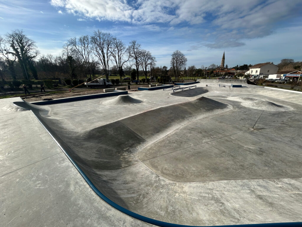 Le skatepark de La Brède a ouvert en décembre 2024 au Parc de l’Espérance, répondant à une demande de nombreux pratiquants de glisse de la commune et de la Métropole bordelaise. Cet équipement d’environ 650 m² en béton lissé a été imaginé pour offrir une surface roulante fluide et durable, accessible sans barrière d’entrée dans un cadre verdoyant à proximité d’autres installations comme le city-stade et les aires de loisirs du parc. Il a été réalisé en quelques mois après une phase de conception qui a impliqué des jeunes Brédois et des usagers intéressés par le projet.