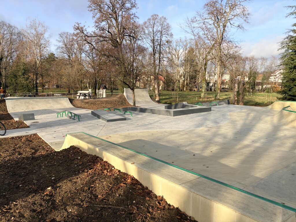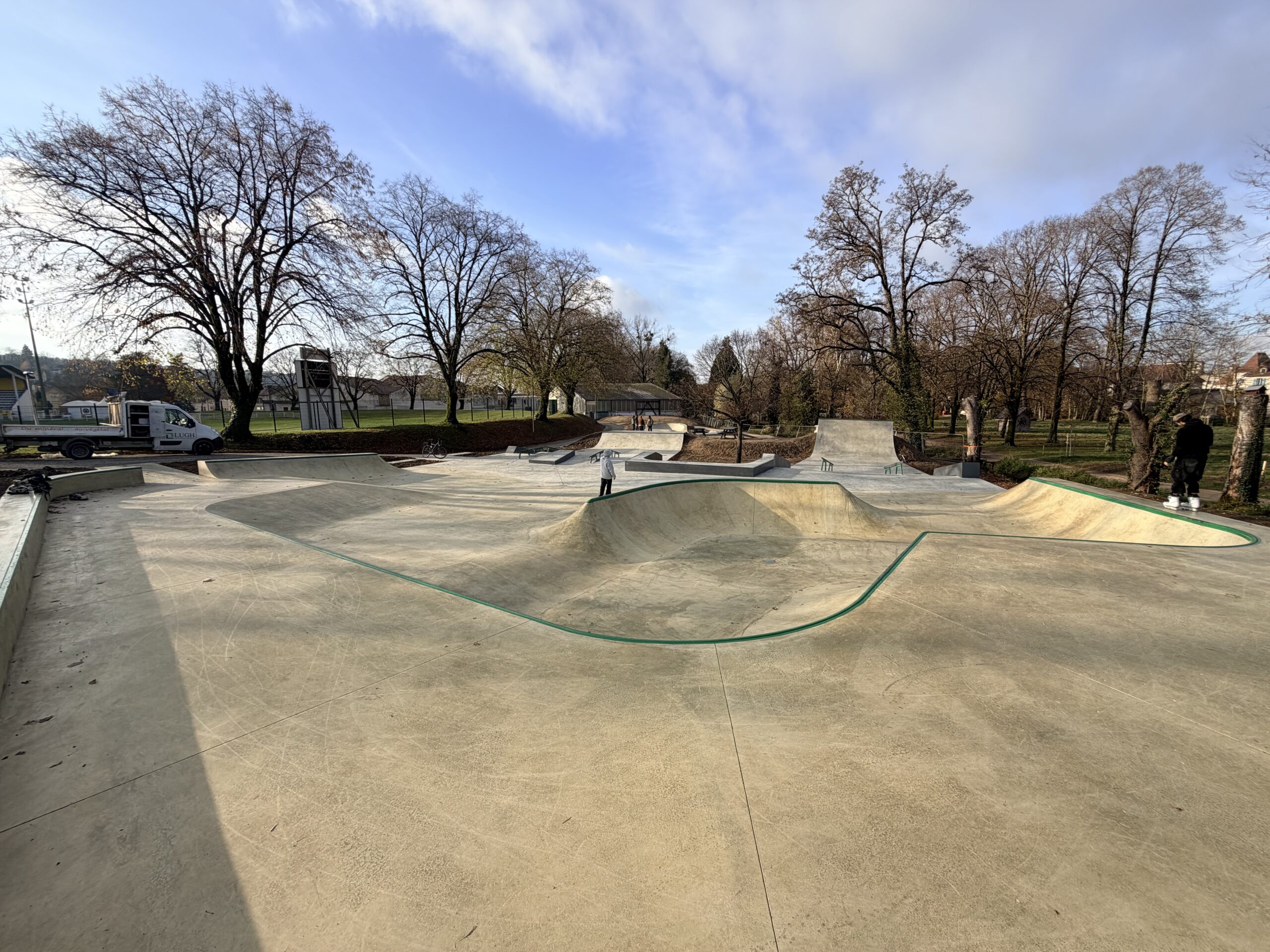 La construction du nouveau skatepark de Lons-le-Saunier a débuté pendant l’été 2025, entre le stade municipal et le parc des Bains. Le projet prend place dans un secteur déjà dédié aux pratiques sportives et de plein air, avec l’objectif de proposer un équipement public en béton adapté aux usages actuels. D’une superficie d’environ 660 m² pour le skatepark, complétée par un pump-park couvert de 155 m².